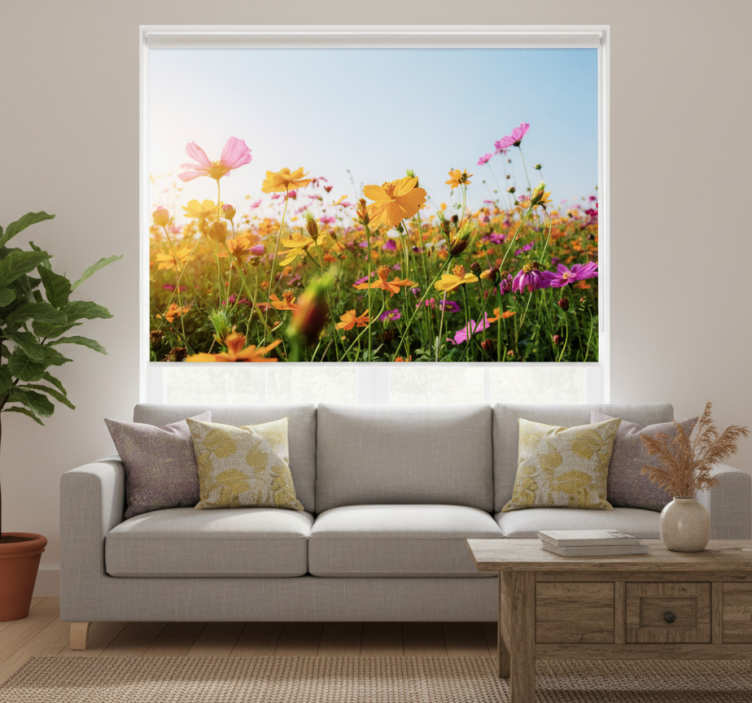 Rollo wohnzimmer mit blumenmischung