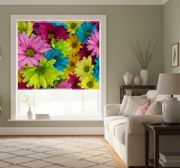 Das Rollo Wohnzimmer mit bunten Blumen ist mehr als nur ein Sichtschutz – es ist ein wahrer Blickfang! Durch seine lebhaften Designs bringen Sie Farbe und Lebensfreude in Ihr Zuhause. Dieses dekorative Produkt ist ideal, um jedem Raum Charakter und Persönlichkeit zu verleihen. Lassen Sie sich inspirieren und genießen Sie die vielen Vorteile, die unser Rollo bietet, von der Regulierung des Lichts bis hin zur Verbesserung der Raumästhetik. Kreieren Sie eine Wohlfühloase, die sowohl funktional als auch ästhetisch ansprechend ist!
