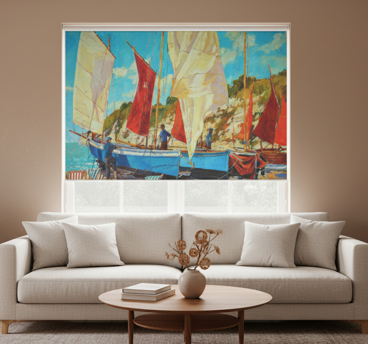 Rollo wohnzimmer mit drei booten auf dem wasser