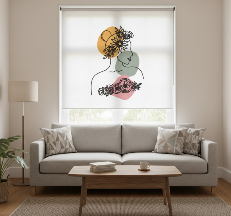 Rollo wohnzimmer mit erstaunlichem frauenblumenmotiv