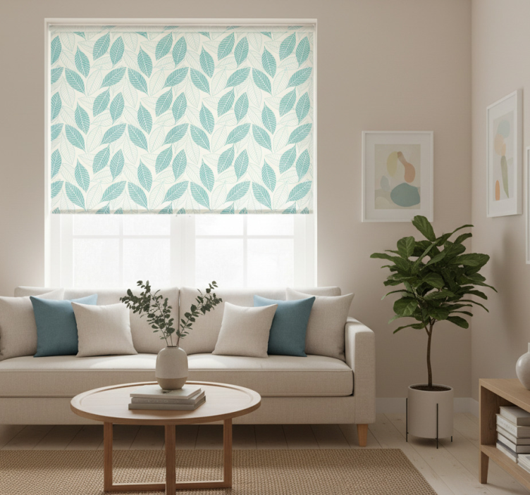 Rollo wohnzimmer mit künstlerischem muster abstrakte blätter