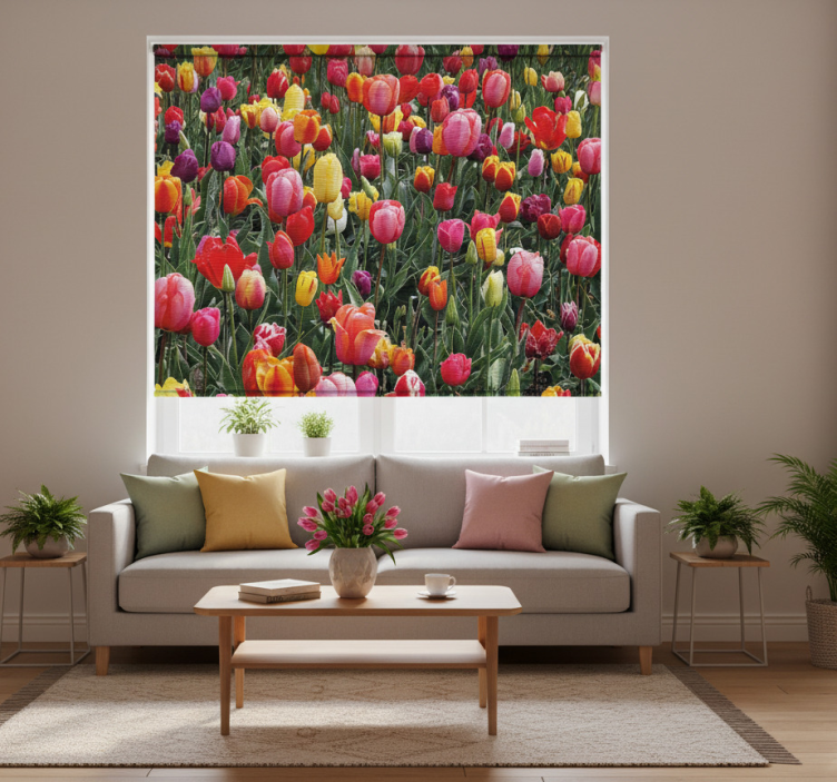 Rollo wohnzimmer mit vielen tulpen auf dem feld