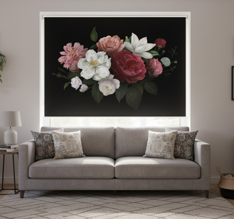 Rollo wohnzimmer mit vintage-rosen auf schwarz