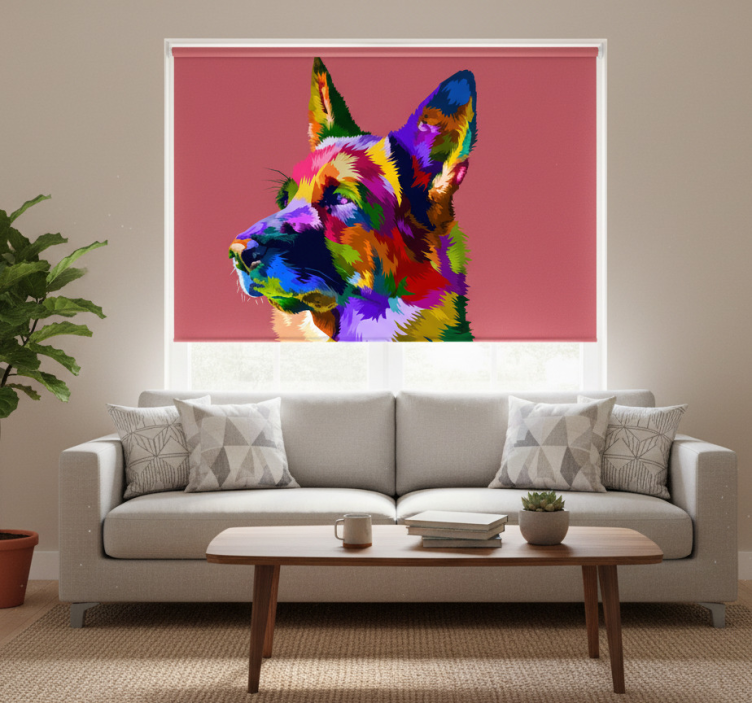 Referenz: E8507Entdecken Sie das Rollo Wohnzimmer Regenbogen Deutscher Schäferhund, das mit seinem einzigartigen Design Ihr Zuhause in ein farbenfrohes Paradies verwandelt. Die lebhaften Farben und das ansprechende Motiv des Deutschen Schäferhundes bringen Freude und Stil in jeden Raum und sorgen dafür, dass Ihr Wohnzimmer nicht nur funktional, sondern auch ästhetisch ansprechend ist. Mit nur einem Blick wird dieses Rollo zum Blickfang und verleiht Ihrem Wohnraum eine persönliche Note.