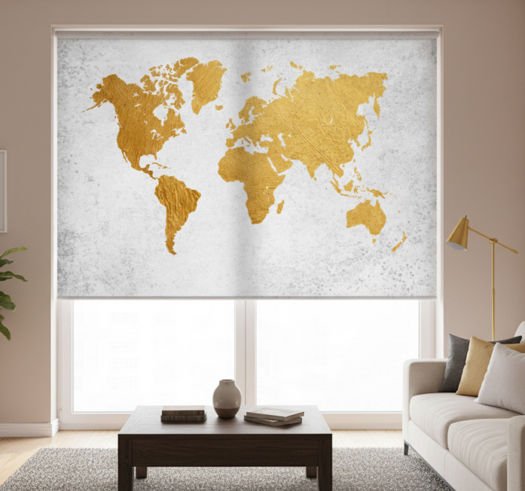 Rollo wohnzimmer weltkarte gold