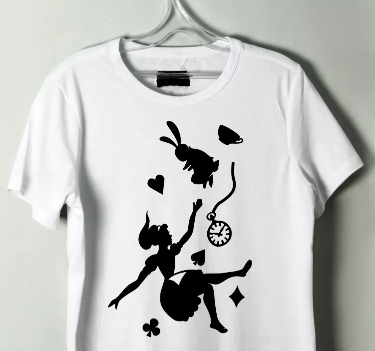 Entdecken Sie die zauberhafte Welt unseres Kinder T Shirt mit fantasievoller teeparty freude, das mit einem einzigartigen Design begeistert. Auf diesem T-Shirt tummeln sich fröhliche Hasen und geheimnisvolle Silhouetten, die an die magische Geschichte von Alice im Wunderland erinnern. Mit einer Taschenuhr, die die Zeit anzeigt, und verspielten Herzen bringt dieses Shirt eine wunderliche Atmosphäre in den Alltag Ihrer Kinder. Es ist der perfekte Begleiter für kleine Abenteurer, die die Freude an einer imaginären Teeparty genießen möchten!