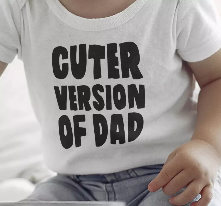 Referenz: T5401Dieses verspielte Design zeigt fetten, stilisierten Text, der 'Cuter Version of Dad' lautet. Die schwarzen Buchstaben stehen im Kontrast zu einem hellen Hintergrund und schaffen einen lustigen und ansprechenden Look für ein Kinderoutfit. Ideal, um familiäre Verbindungen mit einem humorvollen Twist zu feiern.