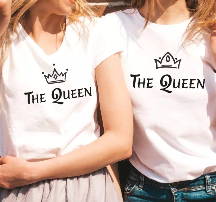 Referenz: T4073Dieses Bild zeigt einen herzerwärmenden Moment zwischen einer Mutter und ihrer Tochter, die beide passende Outfits tragen, die stolz die Phrase 'The Queen' präsentieren. Das verspielte Design, das durch Kronen betont wird, symbolisiert ihre besondere Bindung und gemeinsame Momente der Freude.