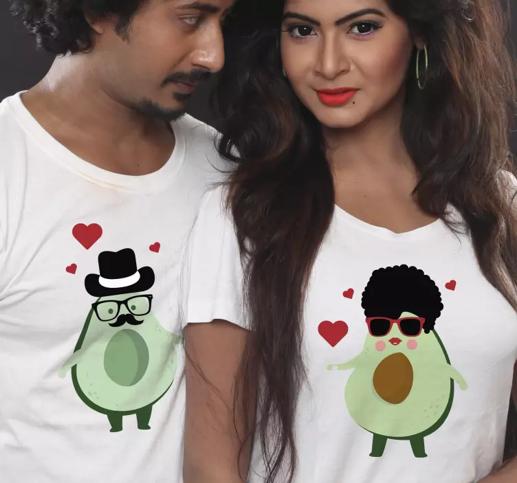 Referenz: T4161Dieses lebendige Design zeigt niedliche Avocados, die mit stilvollen Accessoires gekleidet sind und ein liebendes Paar darstellen. Die verspielten Elemente beinhalten Herzen, die Wärme und Humor hinzufügen. Ideal, um Zuneigung auszudrücken, fängt dieses einzigartige Konzept Freude ein und ist eine unterhaltsame Ergänzung für diejenigen, die leichtfüßige Themen schätzen.