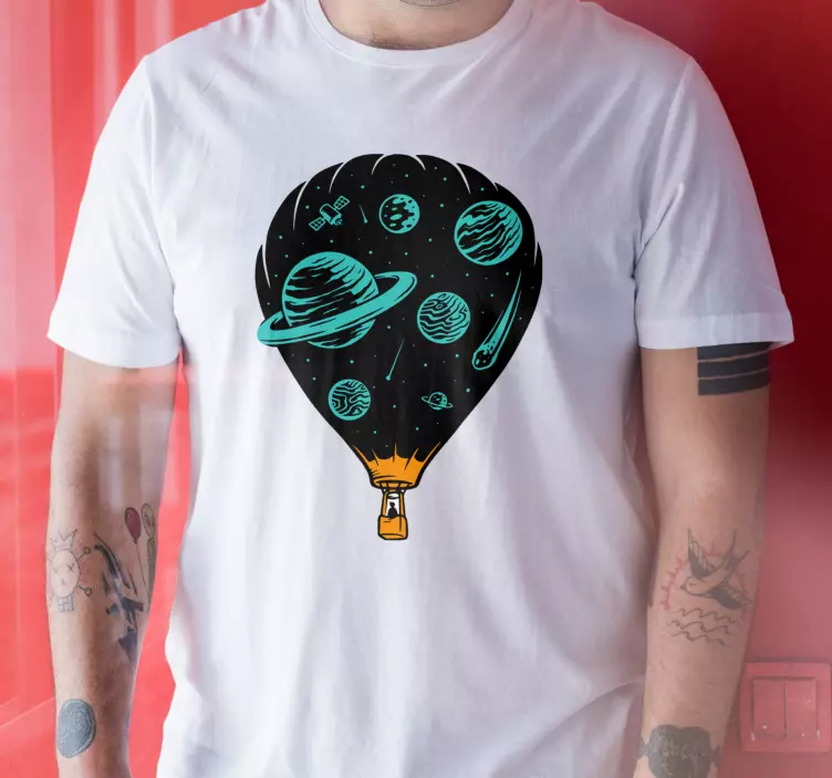 Referenz: T5406Dieses fesselnde Design zeigt einen Heißluftballon, der mit atemberaubenden Himmelskörpern gefüllt ist. Lebhaft illustrierte Planeten und Asteroiden erzeugen ein Gefühl von kosmischem Abenteuer, das sowohl Träumer als auch Entdecker anspricht. Perfekt für diejenigen, die die Wunder des Universums lieben.