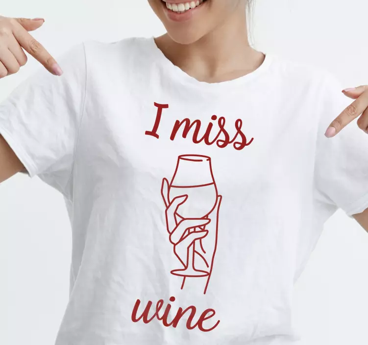 Referenz: T4737Dieses Bild zeigt eine lustige und stilvolle Botschaft, die ein nostalgisches Gefühl gegenüber Wein ausdrückt. Das Design enthält eine elegant gezeichnete Hand, die ein Weinglas hält, begleitet von verspielter Typografie. Ideal für legere Kleidung, kombiniert es Humor und Chic und spricht Liebhaber von Wein an.