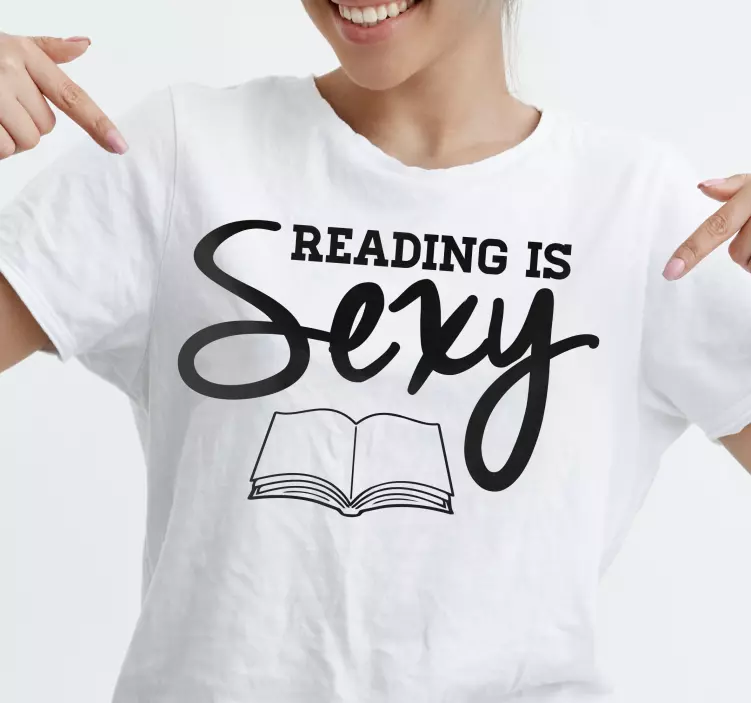 Referenz: T4635Dieses Design enthält einen trendigen Text, der 'Reading is Sexy' sagt, neben einer einfachen Illustration eines offenen Buches. Der verspielte Satz spricht Buchliebhaber an und fördert die Freude am Lesen, was es zu einer unterhaltsamen Ergänzung für legere Kleidung macht.