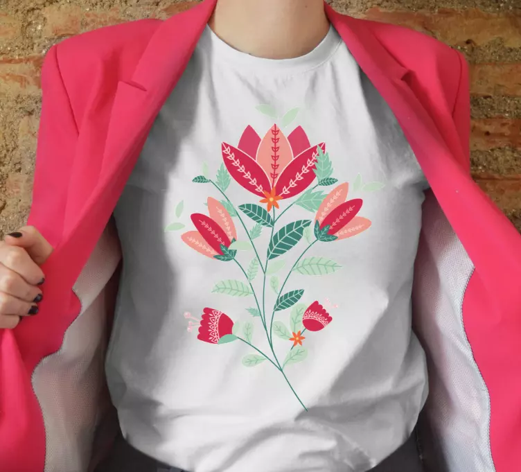 Entdecken Sie unser Original T Shirt mit floralen Blütenarrangements, das mit einem atemberaubenden Design begeistert! Die handgemalten, bunten Blumen verleihen dem Shirt einen folkloristischen und traditionellen Charme, der an die Schönheit der Natur erinnert. Diese botanischen Motive bringen den Frühling direkt in Ihren Kleiderschrank und verleihen jedem Look einen beschwingten, fröhlichen Akzent.