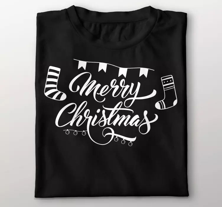 Referenz: T4656Dieses auffällige Design zeigt den Satz 'Merry Christmas' in eleganter Schrift, begleitet von festlichen Mustern wie Strümpfen und dekorativen Elementen, die den Geist der Feierlichkeiten während der Feiertage verkörpern.