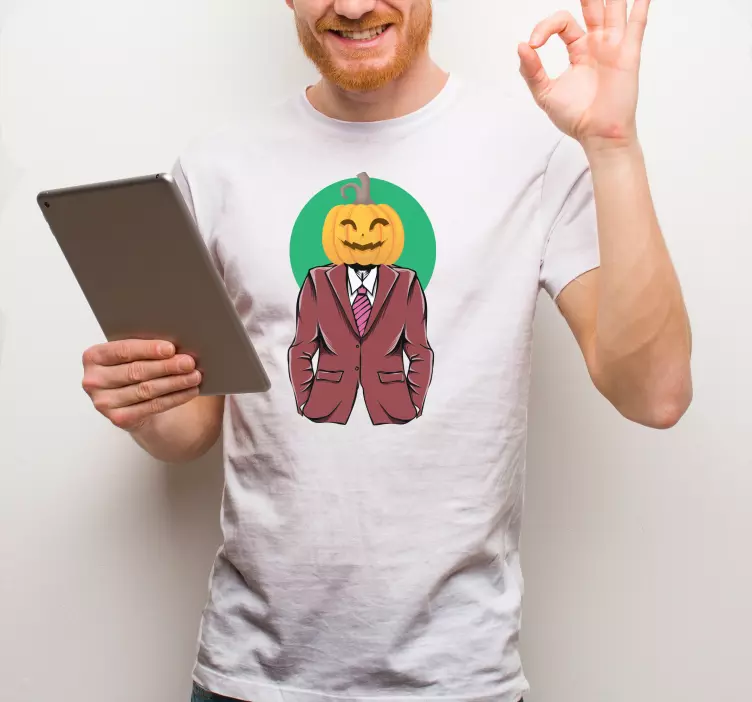 Willkommen zu einem ganz besonderen T-Shirt für Halloween! Unser T Shirt Halloween Kürbiskopf Anzug kombiniert humorvolles Design mit festlichem Flair. Das grafische Design zeigt einen komischen Mann in einem eleganten Smoking, dessen Kopf durch einen fröhlichen Kürbis ersetzt wird. Mit seinem ausdrucksstarken Gesicht bringt es Spaß und Stimmung auf jede Halloween-Feier. Dieses Kostüm ist nicht nur einzigartig, sondern passt auch perfekt zu jeder festlichen Gelegenheit, bei der ein wenig Humor willkommen ist!