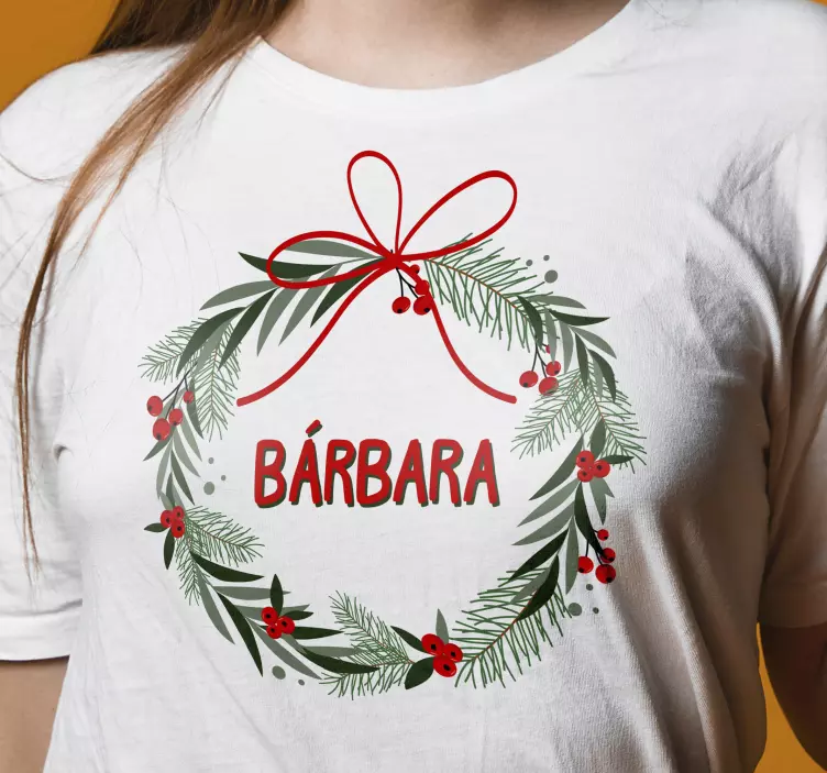 Entdecken Sie unser einzigartiges T-Shirt mit Namen und festlicher personalisierter Kranz, das perfekt für die Weihnachtszeit gestaltet ist! Dieses bezaubernde Design kombiniert festliche Elemente wie einen Kranz aus Blumen in traditionellen Rot und Grün, die in jedem Detail zum Ausdruck kommen. Jedes T-Shirt ist anpassbar und lässt sich mit einem benutzerdefinierten Namen oder einem benutzerdefinierten Text personalisieren, sodass es zu einem ganz besonderen Feier-Begleiter wird. Machen Sie die Feiertage unvergesslich mit diesem personalisierten und personalisierbaren T-Shirt, das sich ideal für jeden Urlaub eignet!