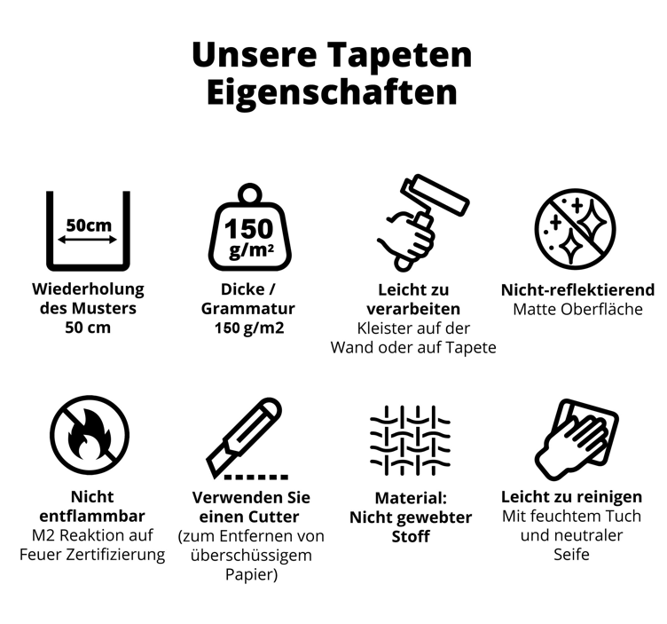 Das Material kann kleine Unebenheiten in der Wand abdecken. Wenn jedoch vor dem Tapezieren tiefe Risse/Rillen vorhanden sind, sollten diese erst gefüllt und geglättet werden. Außerdem ist es notwendig die Reste von vorherigen Tapeten zu entfernen.