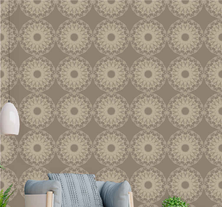 Entdecken Sie die Schönheit unserer Ornament Tapete kompliziertes beiges kreisförmiges muster, die durch ein harmonisches Zusammenspiel von Kreisen, Muster und geometrischen Formen besticht. Dieses dekorative Design verleiht jedem Raum einen Hauch von Eleganz und Stil, während die symmetrischen Elemente ein Gefühl von Ruhe und Ausgewogenheit schaffen.