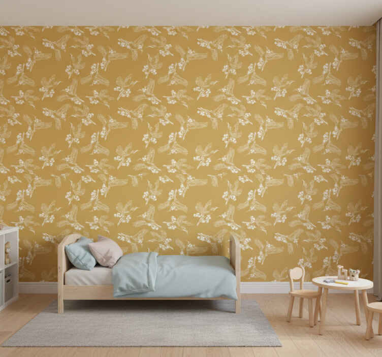 Tapete kinderzimmer mit japanischen blumen und vögeln
