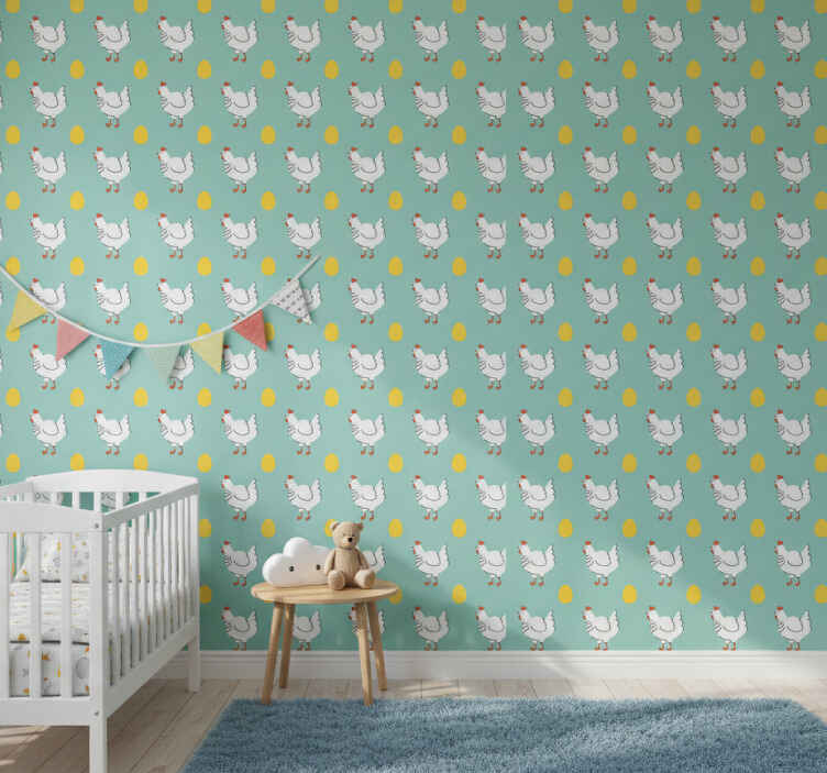 Tapete kinderzimmer mit weißem küken auf blauem hintergrund