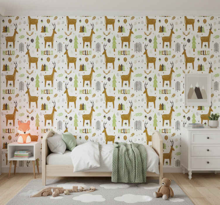 Referenz: P12176Die Tapete Kinderzimmer Nordic Forest Begrüßung bringt eine zauberhafte Waldatmosphäre in das Kinderzimmer. Mit ihren matten Farben und dem einzigartigen Design von verspielten Waldtieren, Bäumen und sanften Naturmotiven schafft sie eine einladende Umgebung, die zum Spielen und Träumen anregt. Diese Vliestapete ist nicht nur ein Blickfang, sondern auch eine praktische Wahl für jedes Kinderzimmer.