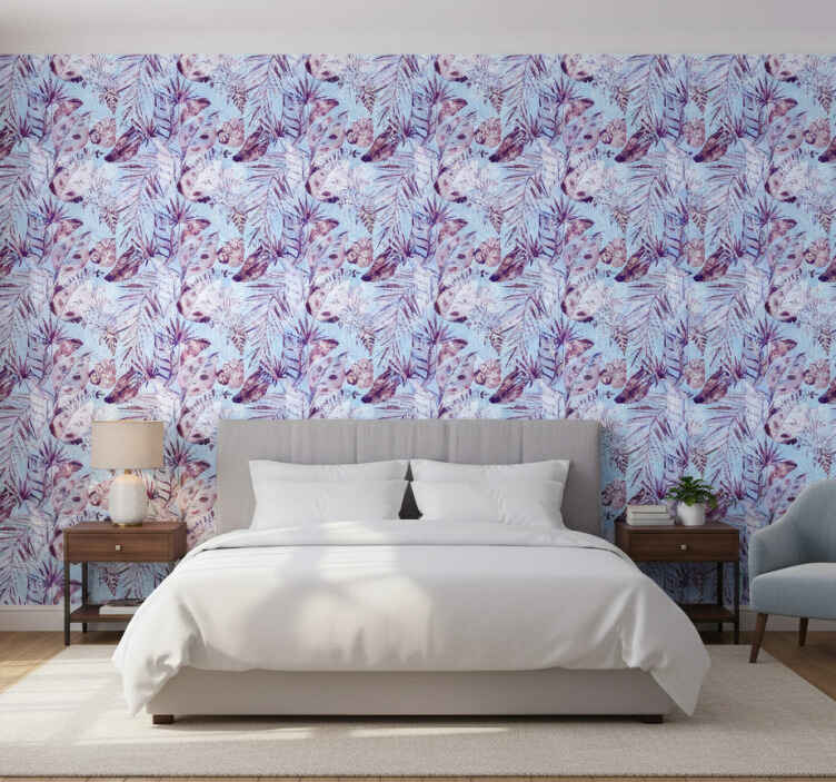 Die Tapete Schlafzimmer tapete schlafzimmer mit floralen blattillustrationen ist die perfekte Wahl, um Ihre Wände in ein Kunstwerk zu verwandeln. Sie fügt sich nicht nur harmonisch in jede Einrichtung ein, sondern bringt auch eine beruhigende und zugleich lebendige Ausstrahlung in den Raum. Die floralen Designs inspirieren und schaffen eine einladende Atmosphäre, die zum Entspannen und Wohlfühlen einlädt. Verleihen Sie Ihrem Schlafzimmer einen neuen Look und lassen Sie sich von der Schönheit der Natur umgeben!