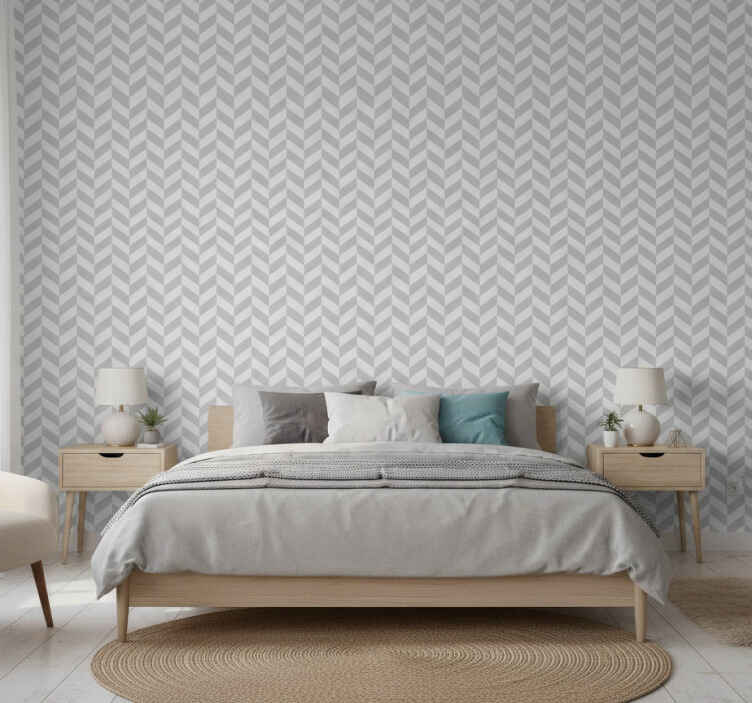 Tapete skandinavisch in weiß-grauem fischgrätmuster