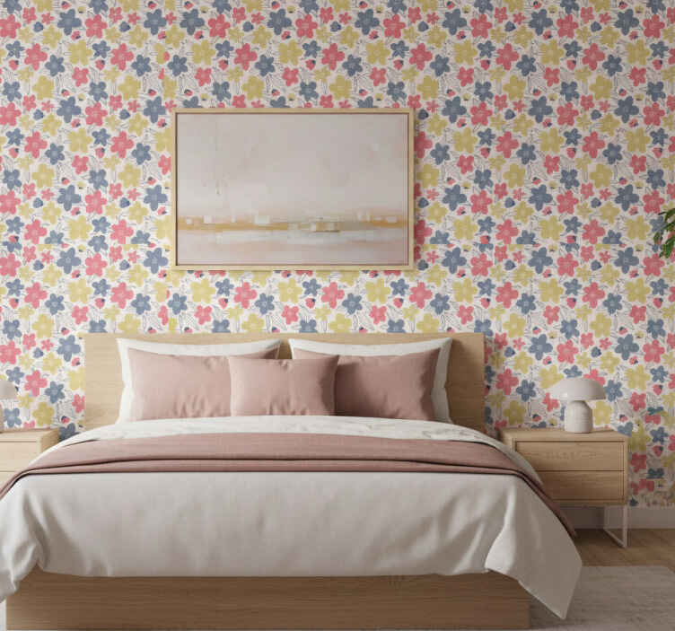 Tapete skandinavisch mit blütenmuster in hellen farben