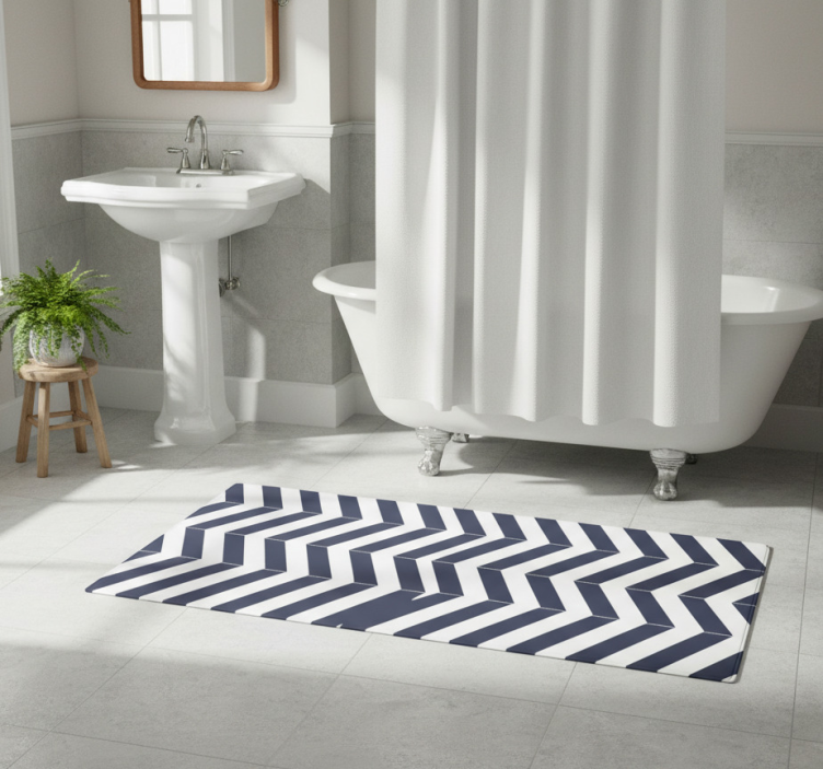 Vinyl teppich bad mit navyblauem streifenmuster