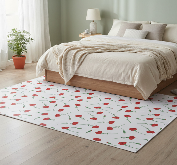 Der Vinyl Teppich Blumen mit Nelkenmuster ist die ideale Wahl für alle, die ihrem Wohnraum einen Hauch von Eleganz und Frische verleihen möchten. Mit seinem einzigartigen Design bringt er Farbe und Leben in jedes Zimmer. Ob im Wohnzimmer, Schlafzimmer oder Flur – dieser Teppich verwandelt jeden Raum in eine blühende Oase. Die Kombination aus stilvollem Aussehen und praktischen Eigenschaften macht ihn zu einem Muss für jede moderne Wohnung!