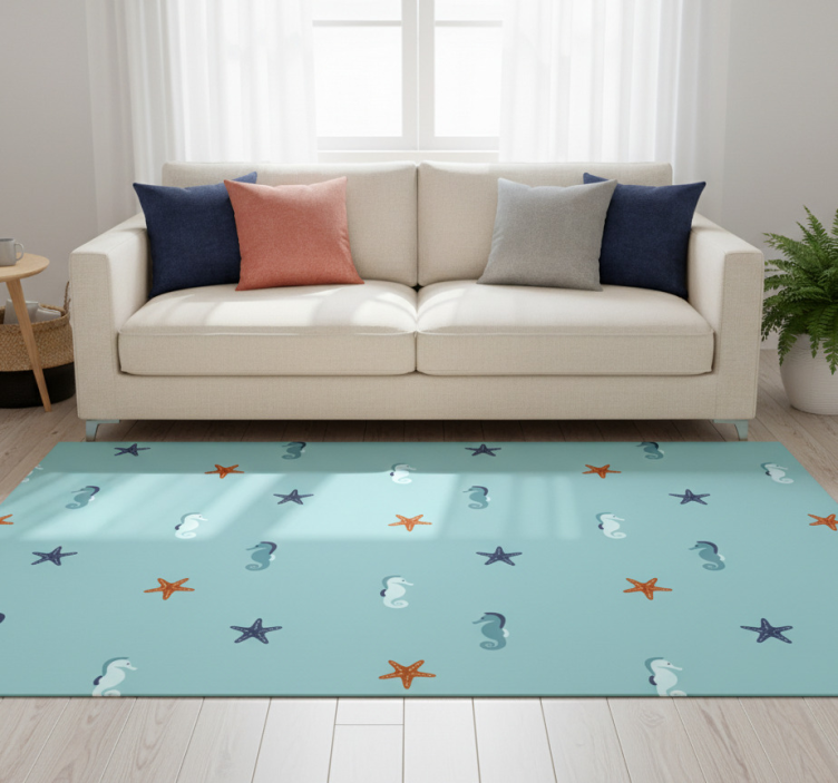 Vinyl teppich blumen mit seepferdchen und seesternen