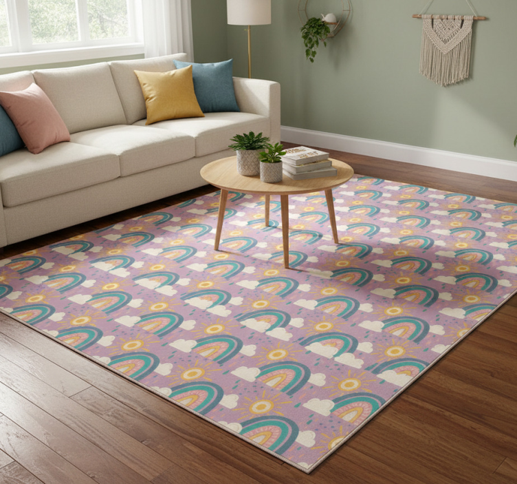 Vinyl teppich blumen verspielt bunte regenbögen