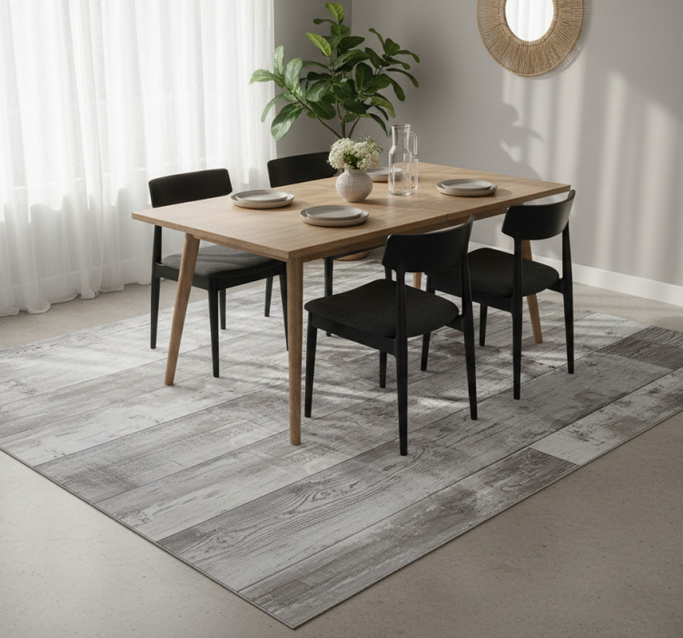 Vinyl teppich esszimmer in grauen holzplanken