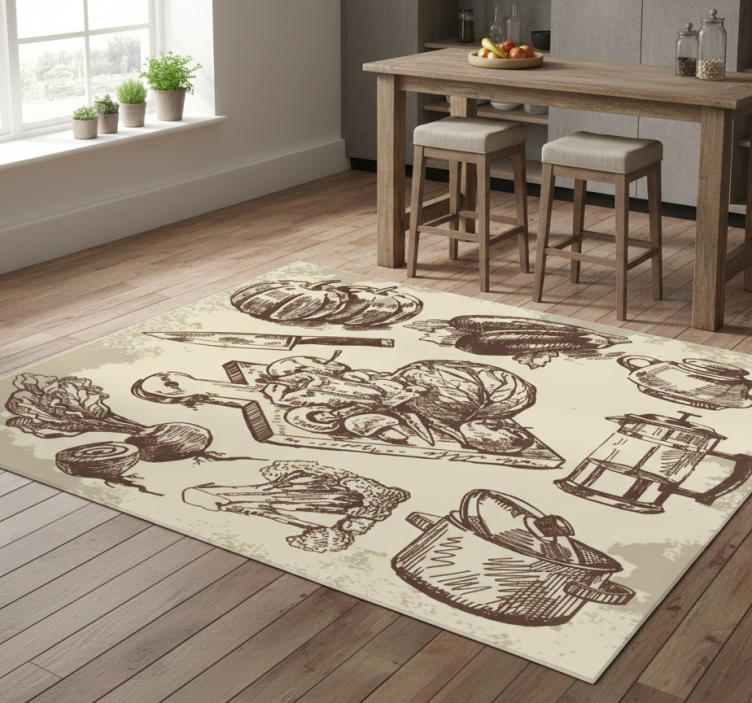 Vinyl teppich küche mit vintage-illustration