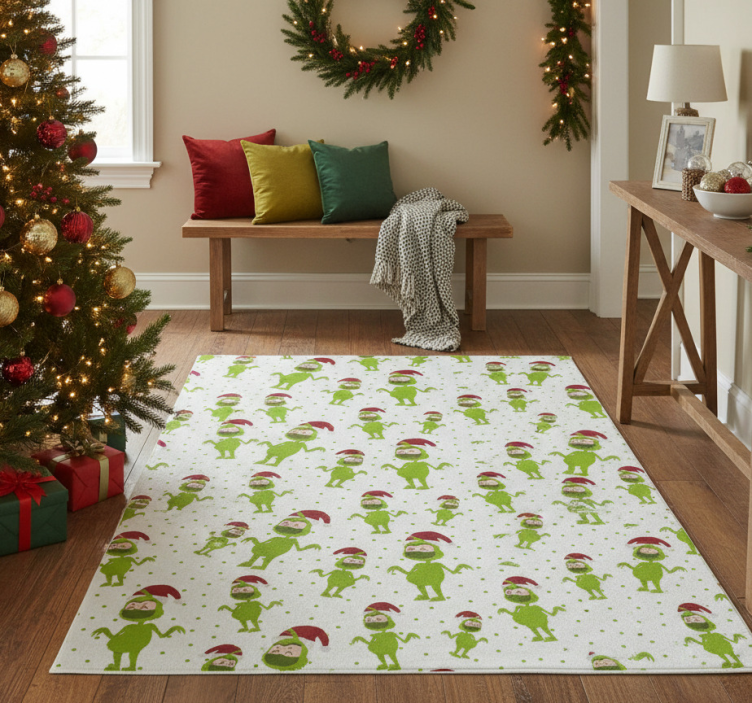 Referenz: R21679Entdecken Sie unseren Vinyl Teppich Weihnachten fröhliche Weihnachten mit Maske, der durch sein festliches und lebhaftes Design begeistert! Die Kombination aus fröhlichen Weihnachtsmotiven und einem tollen Maskenmotiv sorgt für eine stimmungsvolle Atmosphäre in jedem Raum. Der Teppich ist nicht nur ein Blickfang, sondern bringt auch einen Hauch von Freude und Gemütlichkeit in Ihr Zuhause!